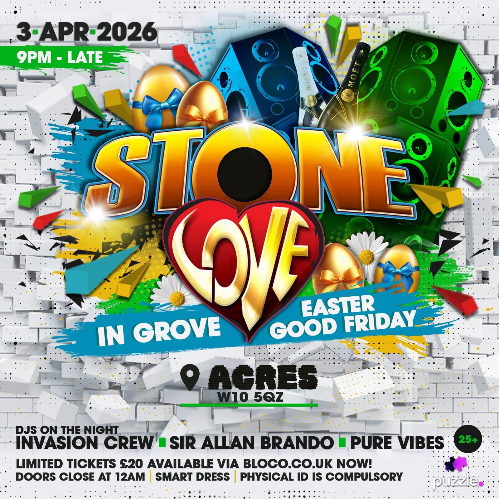 The EventTHIS EASTER • GOOD FRIDAY • 3RD APRIL 2026🔥 STONE LOVE 🔥Returns to West Londonat the iconic ACRES (formerly Subterranea)This Easter, there’s only one place to be.For one exclusive night, Stone Love takes you on a memorable journey through classic selections and heavyweight dubplates 💥🎶Supported by West Londons favourites, exclusively for the night:• Invasion Crew• Sir Allan Brando• Pure Vibes9pm till late Doors close at 12.01am!! Smart dress! Over 25’s!PHYSICAL ID IS COMPULSORY 🎟 Limited £20 tickets available now👥 Group bookings:📧 Puzzleentertainment@icloud.com